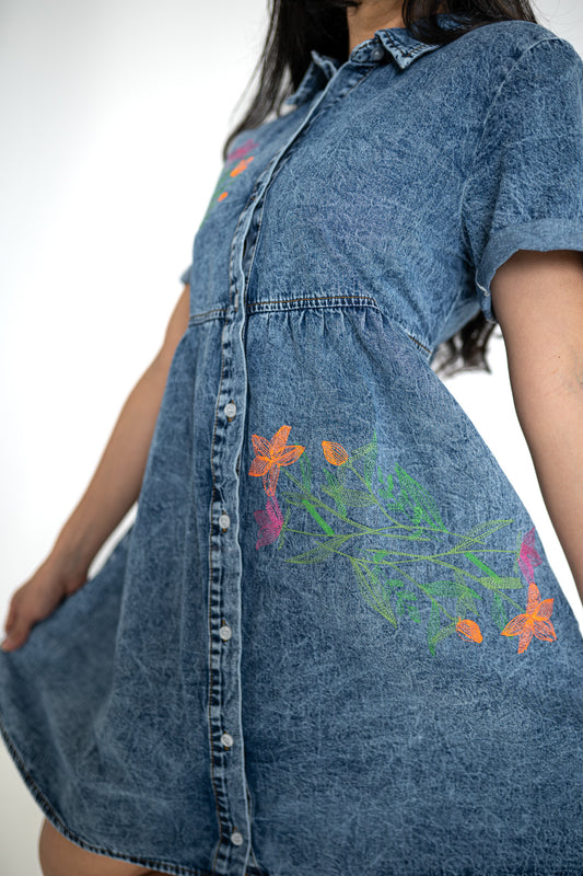 Farmers’ Market Flower Border Light Blue Denim Mini Skirt