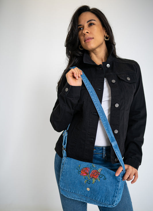 Painted Roses Light Blue Denim Flap Purse