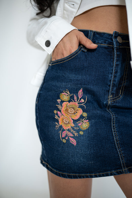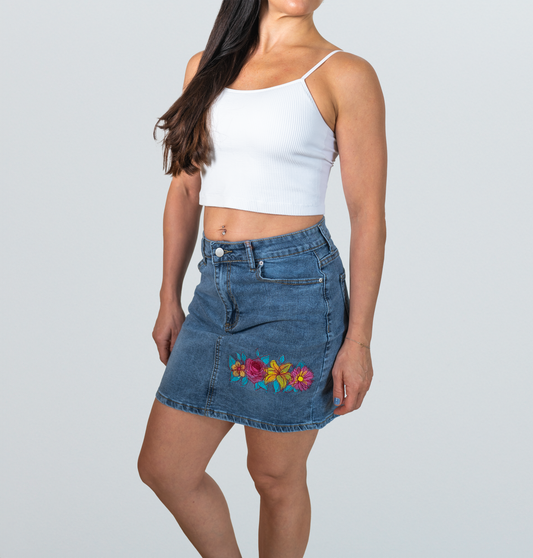 Farmers’ Market Flower Border Light Blue Denim Mini Skirt